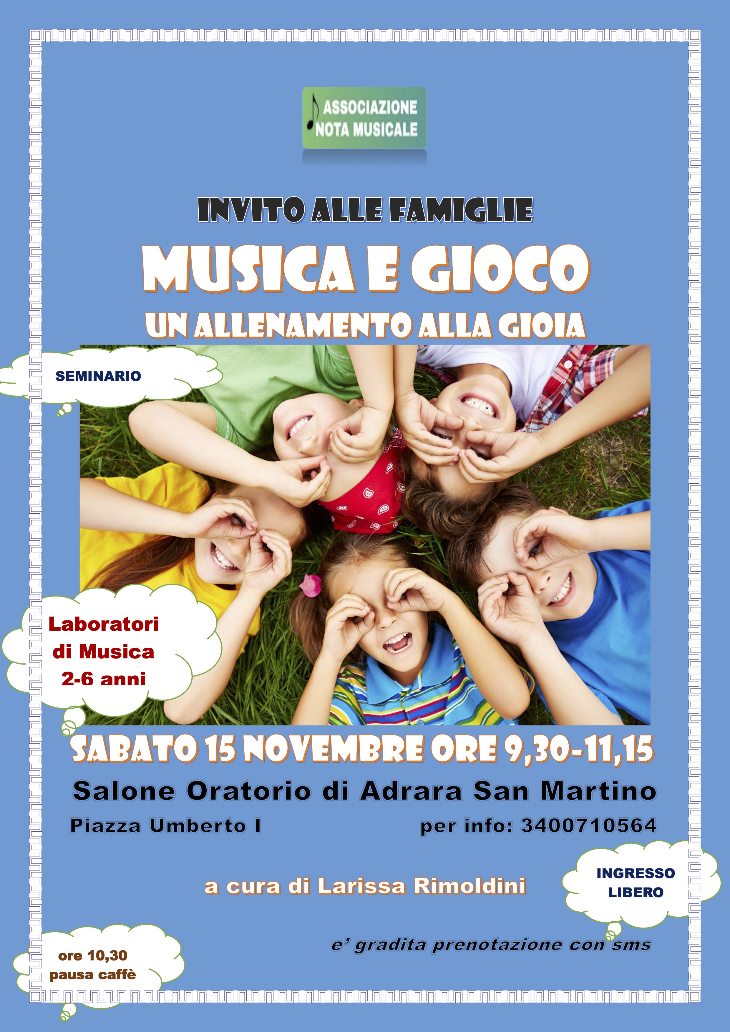 Alle ore 17,00 presenteremo le attività didattiche individuali e collettive (laboratori, orchestra didattica, musica da camera); alle 17,30 con i singoli insegnanti seguirà l’organizzazione oraria delle lezioni. Per informazioni: 3400710564 – 3465928699 / associazione@notamusicale.it